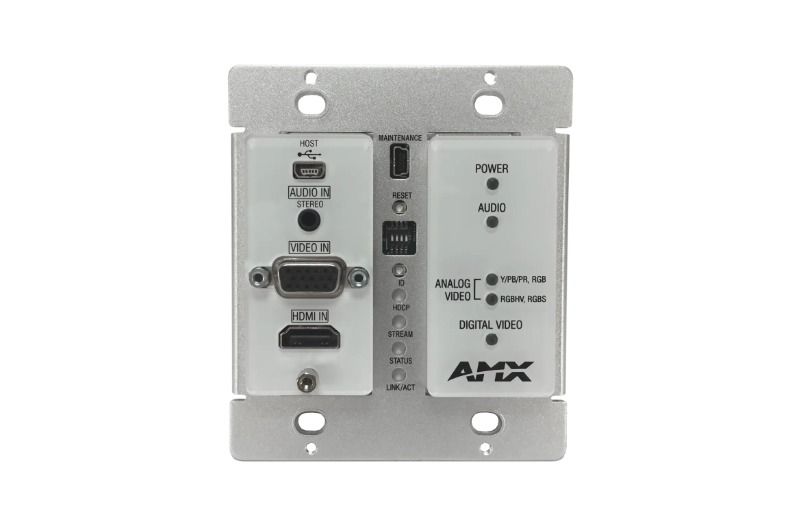NMX-ENC-N1115-WP, NMX-ENC-N1133'ün mükemmel kodlama yeteneklerini 2 gruplu duvar plakası formatında sağlar. Bu kodlayıcı, standart 2'li ABD destek kutusu kullanılarak duvara, kürsüye veya zemin kutusuna kolayca monte edilebilir ve yalnızca tek bir kategori kablosu kullanılarak güç ve Ethernet'e bağlanabilir.