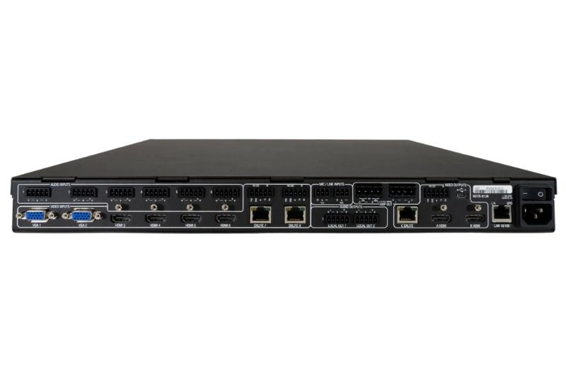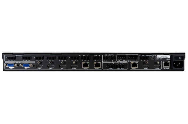 Her birinin 8 girişi (4 HDMI, 2 DXLite ve 2 RGBHV/VGA) ve aynı anda 2 yerel HDMI çıkışına ve 1 DXLite çıkışına sunulan ölçeklendirilmiş bir video beslemesi vardır. Böylece onu 8x1:3 sunum değiştirici haline getiriyoruz.
