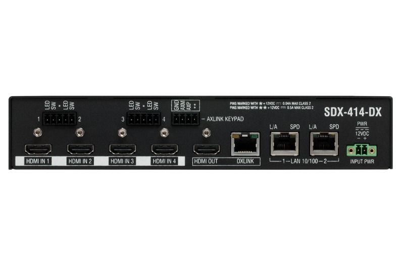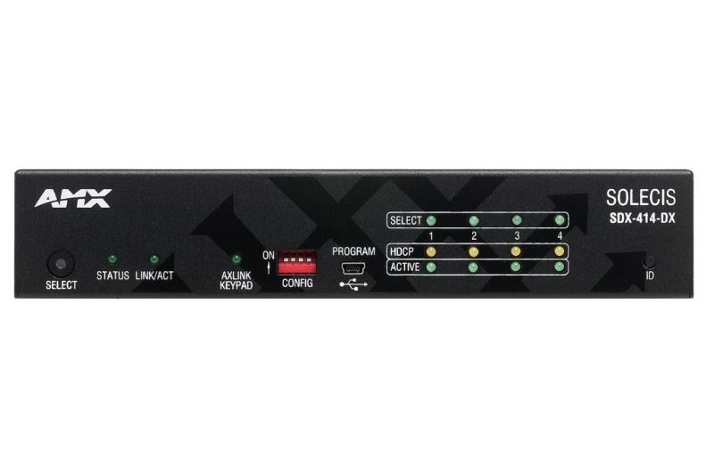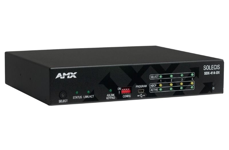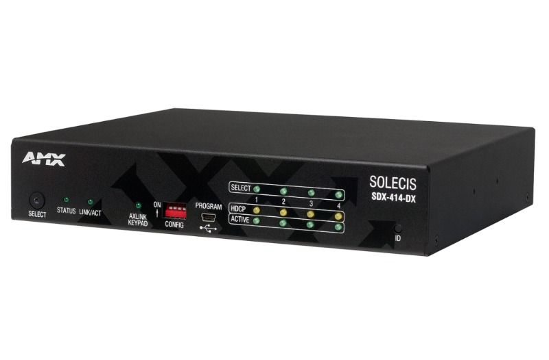 Solecis SDX, küçük dijital AV değiştiricilerden oluşan bir ailedir. 4x1 4K HDMI Solecis Dijital Değiştirici, dört kullanıcı bağlantı noktası sağlayan ve seçilen sinyali hem DXLink hem de HDMI çıkışına yönlendiren basitleştirilmiş yerel kontrol içeren 4K ve Ultra Yüksek Çözünürlük (UHD) özellikli bir çözümdür. Bu, DXLink Vericiyi ve dijital değiştiriciyi genellikle masada kullanılan tek bir küçük form faktörlü cihazda birleştiren basit, düşük maliyetli bir çözüm sağlar.