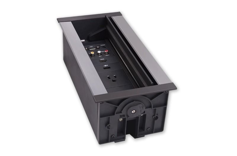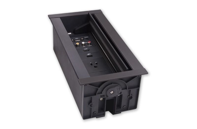 HPX-900 9 HydraPort® Ünite Muhafazası, mobil cihazları bir konferans odası veya sınıftaki projektörlere veya ekranlara bağlamak için kullanılan modüler bir AV masa kutusudur. Bu şık, gömme montajlı masa kutusu tipik olarak bir konferans odası veya sınıf masasına kurulur ve temiz, göze çarpmayan bir görünüm sağlamak için her iki yönde de rahatlıkla açılabilen benzersiz tasarımlı bir kapağa sahiptir.