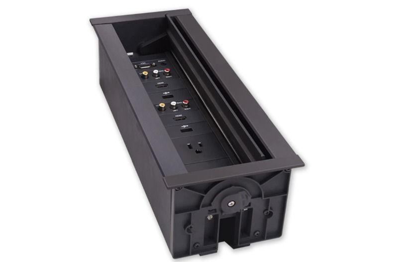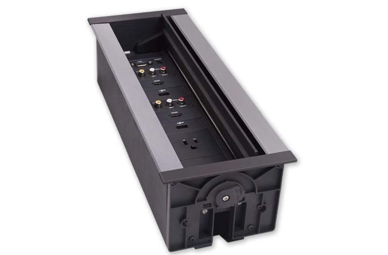 HPX-1200 / 12 HydraPort® Ünite Muhafazası, mobil cihazları bir konferans odası veya sınıftaki projektörlere veya ekranlara bağlamak için kullanılan modüler bir AV masa kutusudur. Bu şık, gömme montajlı masa kutusu tipik olarak bir konferans odası veya sınıf masasına kurulur ve temiz, göze çarpmayan bir görünüm sağlamak için her iki yönde de rahatlıkla açılabilen benzersiz tasarımlı bir kapağa sahiptir.