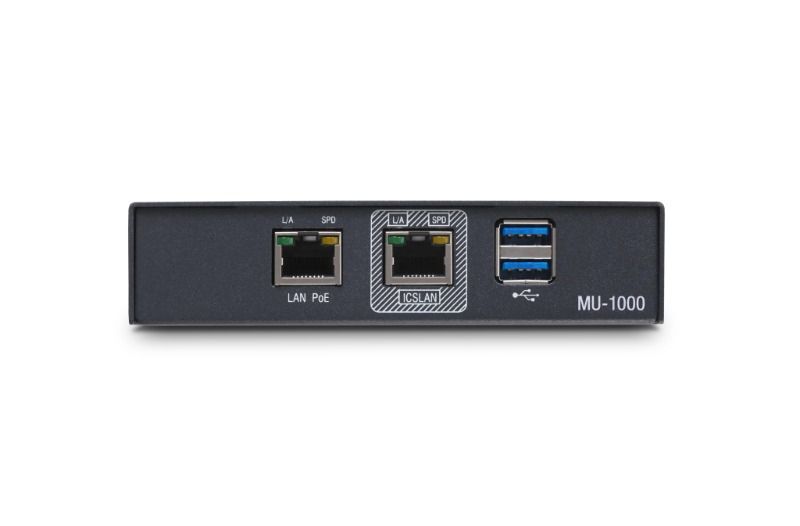 MU-1000 kolayca gizlenebilecek kadar küçüktür ve kurulumu daha da kolaylaştırmak için PoE ile güçlendirilmiştir. ICSLan ağ bağlantı noktası, kontrollü cihazlar için yalıtılmış bir ağ sağlar.