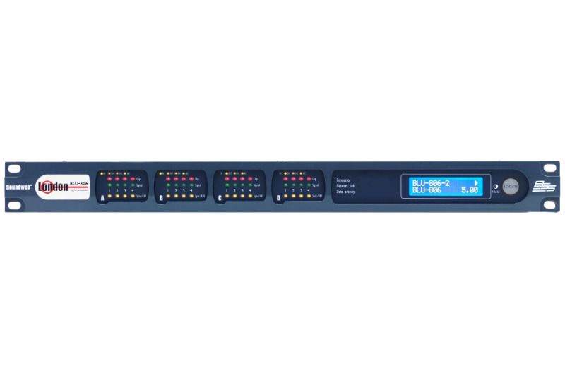Soundweb London BLU-806DA, yapılandırılabilir I/O, yapılandırılabilir sinyal işleme, Dante / AES67 ses ve yüksek bant genişliği, hataya dayanıklı dijital ses veri yolu sunar. BLU-806DA, HiQnet Audio Architect aracılığıyla tamamen yapılandırılabilen açık bir mimariye sahiptir. Zengin işleme ve mantıksal nesneler paleti ve "sürükle ve bırak" yapılandırma yöntemi, basit ve tanıdık bir tasarım ortamı sağlar. Bu işlemci, ayrı bir Ethernet bağlantı noktası üzerinden kontrol ile hata toleransı için birincil ve ikincil bağlantı noktalarına sahip Dante / AES67 ses özelliğine sahiptir. Ayrıca işlemci, Dante Etki Alanı Yöneticisi ile entegrasyon için Dante 4.0 ürün yazılımı desteğini de içerir. BLU-806DA aynı zamanda uyumlu cihazlar arasında 100 m mesafe sağlayan standart Kategori 5e kablo kullanan, düşük gecikme süreli, hata toleranslı 256 kanallı bir dijital ses veriyoluna sahiptir. Fiber optik medya dönüştürücüler, cihazlar arasındaki mesafeyi 40 km'nin üzerine çıkarmak için kullanılabilir. Dört kart yuvası birçok farklı cihaz I/O konfigürasyonunu kolaylaştırır. Her yuvaya Analog Giriş Kartı, Analog Çıkış Kartı, Dijital Giriş Kartı, Dijital Çıkış Kartı, AEC Giriş Kartı ve Telefon Hibrit Kartı dahil olmak üzere mevcut altı G/Ç kartından herhangi biri yerleştirilebilir. Her kart dört kanalı destekler. Analog Giriş Kartları, kanal başına +48dB'ye kadar 6dB'lik adımlarla yazılımla yapılandırılabilir kazanç ve kanal başına yazılımla seçilebilen Fantom Gücü sağlar. Dijital Giriş Kartları ve Dijital Çıkış Kartları, AES/EBU ve/veya S/PDIF sesi işler ve çeşitli saatli ölçüm ve senkronizasyon seçenekleri sunar. AEC Giriş Kartları ve Hibrit Telefon Kartları, öncelikle telekonferans uygulamaları için özel işlem ve arayüz oluşturmayı kolaylaştırır. (Giriş/Çıkış kartları hakkında daha fazla bilgi özel veri sayfalarında bulunabilir) Kanal başına Phantom Power, Sync, Signal Present ve Clip bilgilerine, bir PC'ye ihtiyaç duymadan, net ön panel LED göstergesinden kolayca erişilebilir. Cihaz Adı, Cihaz Tipi, Firmware Sürüm Numarası, Saat, IP Adresi ve Alt Ağ Maskesi gibi cihaza özel bilgiler ön panel ekranından görüntülenebilir. Çift yönlü konum bulma işlevi, cihazların hem HiQnet Audio Architect'ten hem de HiQnet Audio Architect içinden tanımlanmasına olanak tanır. 12 Kontrol Girişi ve 6 Lojik Çıkış, BLU-806DA'nın GPIO uyumlu cihazlarla entegre olmasını sağlar. Soundweb London sistemlerinin üçüncü taraf kontrol sistemleriyle nasıl entegre edilebileceğini ayrıntılarıyla anlatan kapsamlı bir belge olan Soundweb London Arayüz Kiti, HiQnet Audio Architect kurulumuna dahildir. BLU-806DA ve Soundweb London ailesinin diğer üyeleri, mükemmel şekilde uyarlanmış sistem çözümünün yapı taşlarını sağlar.