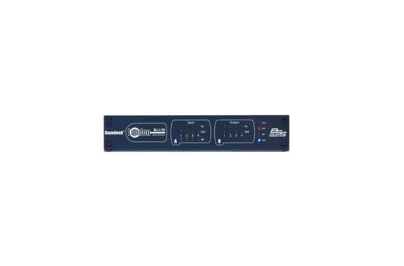 BLU-50, dört giriş ve dört çıkıştan oluşan sabit bir yapılandırma, yapılandırılabilir sinyal işleme, mantıksal işleme ve BLU bağlantısı sunan yarım raf genişliğinde bir işlemcidir. Cihaz, birlikte verilen 12VDC güç kaynağıyla çalıştırılabilir ancak bir terminal bloğu konektörü aracılığıyla 12-48VDC'yi kabul edebilir. BLU-50 ayrıca Ethernet bağlantı noktası üzerinden PoE+ ile de çalıştırılabilir; bu da cihazın tek bir Cat 5e kablo kullanılarak çalıştırılmasına, yapılandırılmasına, kontrol edilmesine ve izlenmesine olanak tanır. BLU-50'nin analog girişleri, kanal başına +48dB'ye kadar 6dB'lik adımlarla yazılımla yapılandırılabilir kazanç ve kanal başına yazılımla seçilebilen Fantom Gücü sağlar. Kanal başına Fantom Gücü, Sinyal Mevcut ve Klip bilgilerine, bir PC'ye ihtiyaç duymadan, net ön panel LED göstergesinden kolayca erişilebilir. BLU-50, uyumlu cihazlar arasında 100 m mesafe sağlayan standart Kategori 5e kablolamayı kullanan, düşük gecikme süreli, hataya dayanıklı, 48 kanallı bir dijital ses veri yolu olan BLU bağlantısına sahiptir. Fiber medya dönüştürücüler, tek modlu fiber kullanılarak cihazlar arasındaki mesafeyi 10 km'nin (6,2 mil) üzerine çıkarmak için kullanılabilir. BLU-50, HiQnet Audio Architect tarafından yapılandırılır, kontrol edilir ve izlenir ve Soundweb London ailesinin diğer üyeleriyle uyumludur. 48 kanallı BLU bağlantı veriyolu, BLU-800, BLU-320, BLU-160, BLU-120, BLU-BIB ve BLU-BOB cihazlarıyla entegre edildiğinde daha büyük 256 kanallı BLU bağlantı veriyolunun 1-48 arasındaki kanallarını temsil eder. Tek bir veri yolu üzerinde 60'a kadar BLU bağlantısı uyumlu cihaz kanalları paylaşabilir. Diğer Soundweb London cihazlarında olduğu gibi, 12 Kontrol Girişi, altı Mantık Çıkışı ve bir RS-232 bağlantı noktası, BLU-50'nin diğer uyumlu cihazlarla entegre olmasını sağlar.