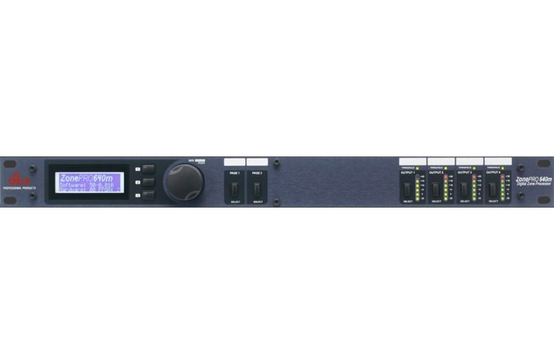 ZonePRO 640m, sabit G/Ç, önceden yapılandırılmış mimari, yapılandırılabilir ekleme işleme ve ses kanallarının bir bağlantı veri yolu aracılığıyla başka bir ZonePRO cihazına isteğe bağlı olarak çoğaltılmasını sunar. 640m'de toplam altı giriş ve dört çıkış bulunur. Girişler, dört adet dengeli mikrofon/hat değiştirilebilir terminal blok girişi ve iki adet mono toplamlı dengesiz RCA girişi çifti içerir. Donanım kontrollü mikrofon kazancı, kanal başına mikrofon kazancının ayarlanmasına olanak tanır. 640m cihazı, giriş işleme, merkezi matris ve çıkış işleme özelliklerine sahip önceden yapılandırılmış bir mimariye sahiptir. İki giriş ekleme konumu ve bir çıkış ekleme konumu, kanala özel ekleme işleminin yapılandırılmasına olanak tanır. Sinyal seviyesi düştüğünde bile tam frekans bant genişliğini koruyan psikoakustik bir işlev olan AutoWarmth®, her çıkış bölgesinde kalıcı olarak mevcuttur. Bir bağlantı veri yolu, ek çıkış bölgelerinin gerekli olduğu uygulamalarda ilk altı ses kanalının başka bir ZonePRO cihazına kopyalanmasına olanak tanır. 640m'nin ön panelinde kapsamlı sinyal ölçümü, bilgilendirici bir LCD ekran ve kullanıcı tarafından belirlenen ön panel kontrolü bulunur. İsteğe bağlı Bölge Denetleyicileri biçiminde ek sistem kontrolü sunulur. Bu donanım duvar denetleyicileri koleksiyonu, ses seviyesi, kaynak ve ön ayar kontrolü gibi işlevler için bir dizi basit, zarif kullanıcı arayüzünü temsil eder. Tüm ZonePRO cihazları, duruma göre RS-232 veya Ethernet aracılığıyla üçüncü taraf kontrol sistemleri tarafından kontrol edilebilir (daha fazla bilgi için tabloya bakın). ZonePRO Designer - ZonePRO cihaz ailesi için konfigürasyon, kontrol ve izleme yazılımı - ZonePRO 640m'nin Ethernet veya RS-232 aracılığıyla kontrolünü sağlar. ZonePRO Designer içindeki Konfigürasyon Sihirbazı, kullanıcılara 640m'nin adım adım konfigürasyon sürecinde rehberlik eder.