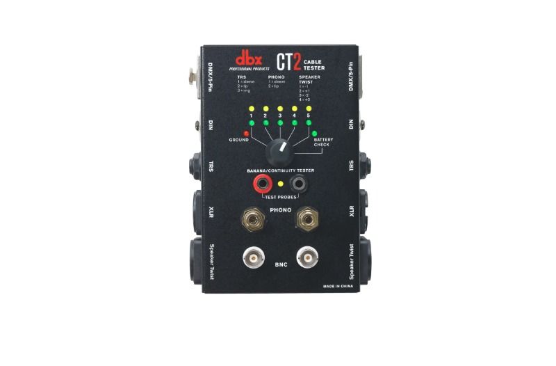 Ses kablolarınızın arızalanmasının ne kadar sinir bozucu ve zaman alıcı olabileceğini hepimiz biliyoruz. dbx CT2 kablo test ünitesiyle artık çok çeşitli kablolarınızı kolaylıkla değerlendirebilirsiniz. CT2, Speaker Twist, XLR, Phono, BNC, DIN, TRS, TS, DMX ve Banana gibi birçok yaygın konektör sunar. CT2, her iki uçta farklı konektörler olsa bile kabloların test edilmesine olanak tanır. Örneğin, TRS'den XLR'ye kabloyu test etmek kolaydır. İyi aydınlatılmış LED göstergeler ve basit bir döner kadran sayesinde kullanıcılar, bir kablonun bağlı olup olmadığını ve düzgün çalışıp çalışmadığını veya ölü ve onarıma ihtiyaç duyup duymadığını hızlı bir şekilde belirleyebilir.