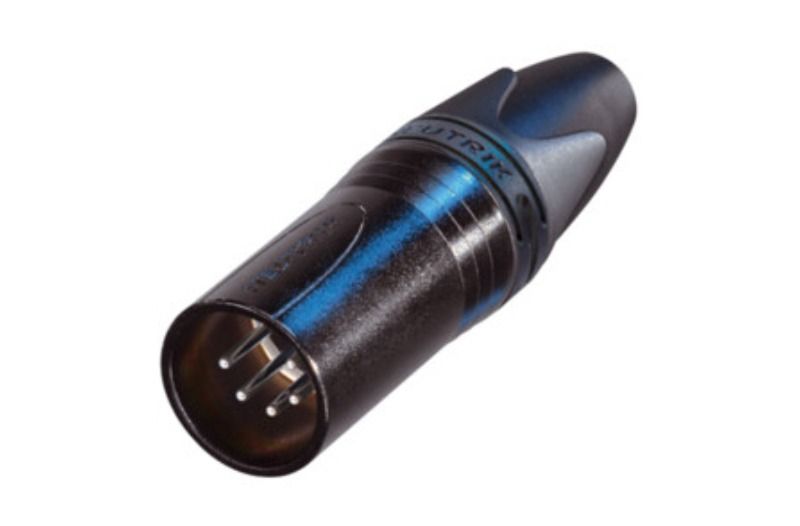 Siyah metal gövdeli ve gümüş kontaklı 5 kutuplu erkek kablo konnektörü.