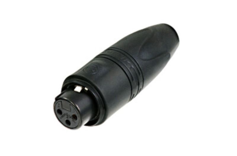 Dış mekan kullanımı için ağır hizmet tipi dişi 3 kutuplu XLR kablo konnektörü, siyah muhafaza.