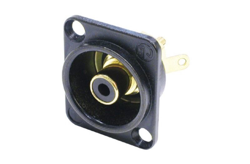 Siyah krom D-şekilli muhafazada fono soketi, siyah izolasyon rondelaları, lehim versiyonu.