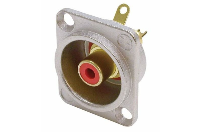 Nikel D-şekilli muhafazada fono soketi, kırmızı izolasyon rondelaları, lehim versiyonu.