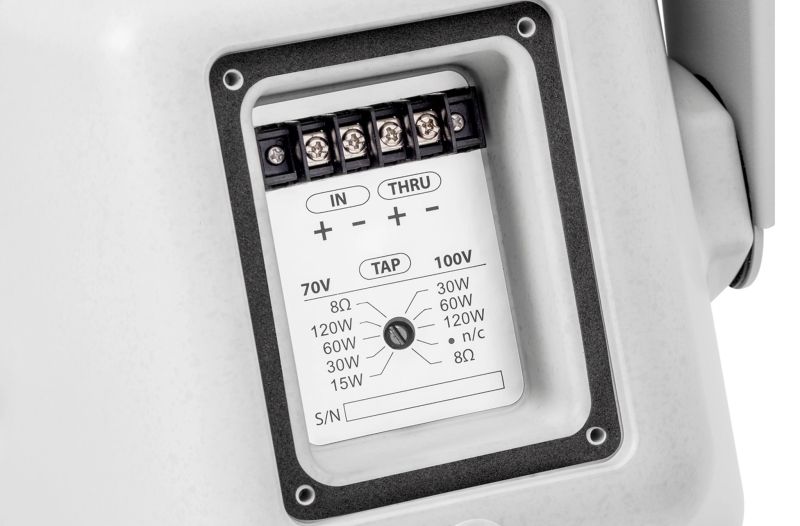- 120 Watt 70V/100V çoklu musluk (dahili transformatör) veya doğrudan 8 Ohm düşük empedans.