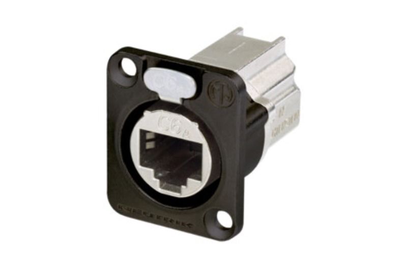 D-şekilli CAT6A panel konnektörü, blendajlı, geçişli, siyah krom muhafaza