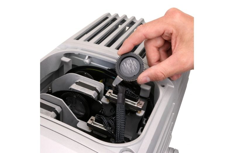 Prism wheel with 2 interchangeable prisms, prism rotation and indexing |
