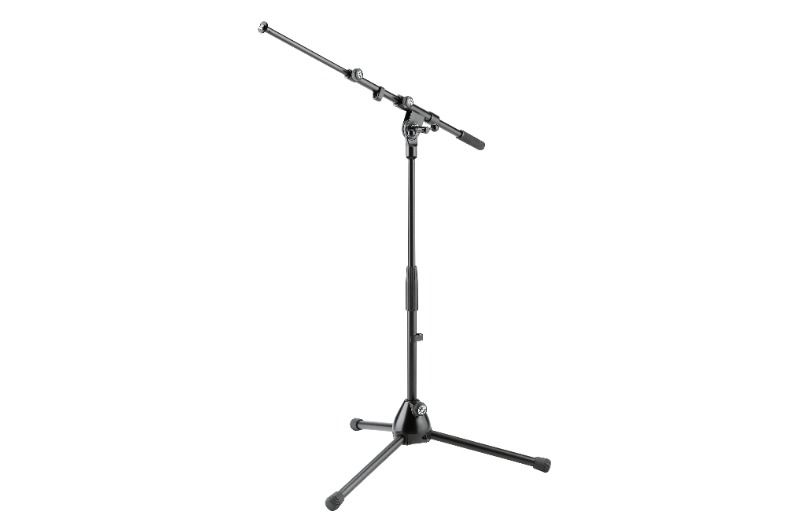 Katlanabilir ayaklı, alçak seviyeli teleskopik stand. 2 parçalı bom koluyla birlikte gelir.