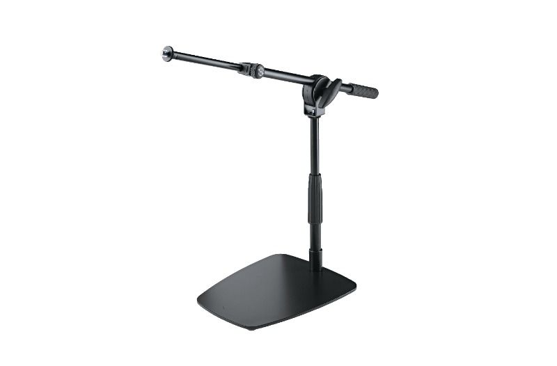 Bas davulları, AMP'ler, Cajon'lar vb. için kompakt, yerden tasarruf sağlayan mikrofon standı. Düz, sağlam stand, örneğin bir bas davulun, bir AMP'nin veya Cajon'un altına kayar ve tripod standının çok hacimli olabileceği yerlerde iyi bir seçimdir. Kolay yükseklik ayarı ve uzatılabilir bom kolu sayesinde mikrofon ayrı ayrı ve hassas bir şekilde ayarlanabilir. Dört elastik lastik ayak darbe sesini emer ve istenmeyen iletim gürültüsünü azaltır.
