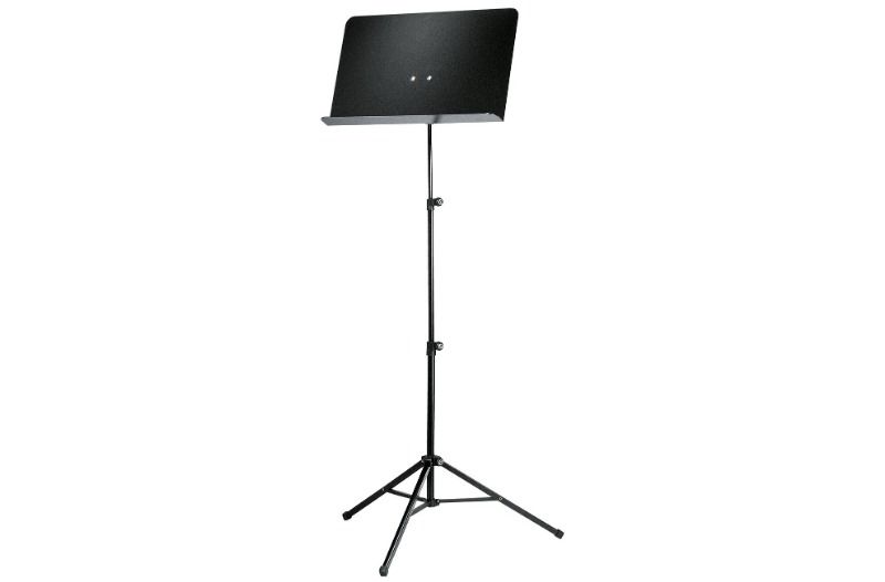 Hafif alüminyum müzik masasına sahip profesyonel müzik standı. Hassas prizmatik bir »V-blok« konektörü, masayı mile bağlar.