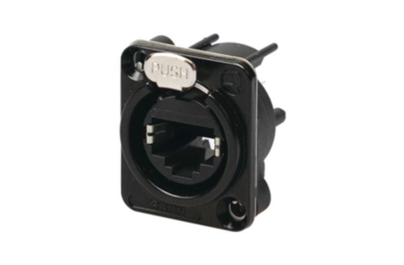 RJ45 Dikey PCB montaj yuvası, mandal kilitli D şeklinde metal flanş