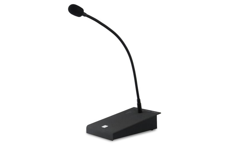 - APM101, 30 cm'lik bir kaz boynuna monte edilmiş, kardioid özellikli bir yoğunlaştırıcı elemanla donatılmış, 1 bölge için bir dijital çağrı mikrofonudur. Dahili kompresör/sınırlayıcı sayesinde mikrofon sinyalinin çıkış seviyesi sürekli olarak korunur. Yeniden üretilen sinyalin durumu, konuşmacının mesajın her durumda net ve duyulabilir olmasını sağlamak için ön panelde gösterilir. Konsolda Bas-Konuş düğmesi bulunur.
