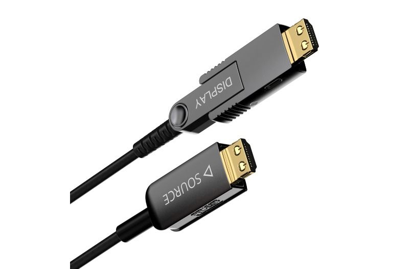 - CLV215A, sabit kurulumlara yönelik aktif bir optik HDMI 2.0 kablosudur. OM3 fiber optik fiber teknolojisi sayesinde 18Gbps bant genişliği ile 60 Hz'de ultra HD 4K 2160p'ye (4096 x 2160) kadar çözünürlükleri aktarabiliyor ve elektronik parazit olasılığını ortadan kaldırıyor. Sabit ve çıkarılabilir HDMI konektörü, bu konektörü kolayca çıkarıp yeniden takmanıza olanak tanır. Bu şekilde kablo, çapı 25 mm kadar küçük olan deliklerden ve düz borulardan geçirilebilir.