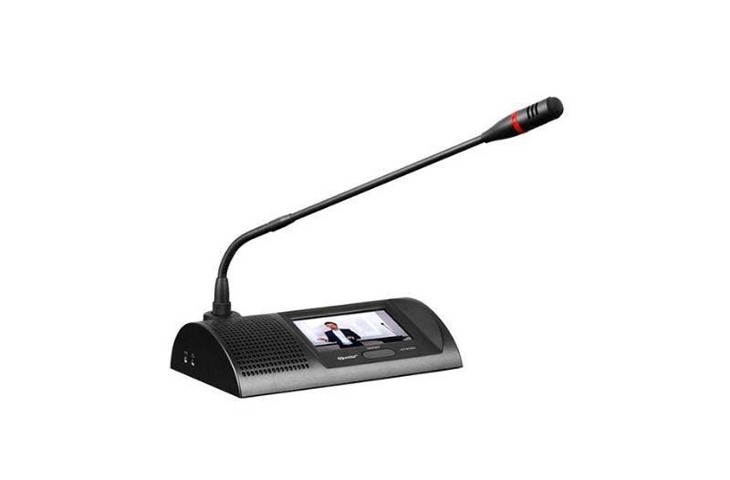 480X272'ye kadar 4,3 inç 24bitTFT ekran çözünürlüğü Dokunmatik kontrolü destekler, kullanıcı toplantı bilgilerini TFT ekranında görebilir ve ayarlayabilir. Destek kamera otomatik izleme işlevi, video mikrofonun TFT ekranında görüntülenebilir. Tüm mikrofon üniteleri için sistem güç kaynağı, ana ünite tarafından 24 güvenli voltajda sağlanır. Dahili yüksek kaliteli hoparlör ve kulaklık girişi.