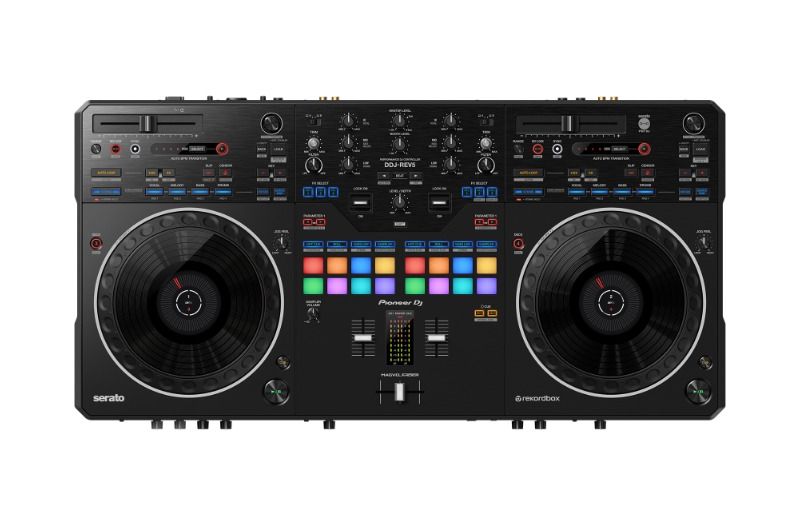 DDJ-REV5, Serato DJ Pro ve rekordbox uyumluluğuna sahip yeni nesil bir kontrol cihazıdır. Bu 2 kanallı ünite, büyük jog'lar, MAGVEL FADER, Stems kontrolü için özel düğmeler, ilk Otomatik BPM Geçişi ve Piyano Çalma modu dahil olmak üzere özgün bir çizik deneyimi ve yenilikçi özellikler sunar.