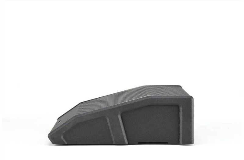 VIO W10'un ahşap kabini, siyah poliüre kaplama ve ayrıntılara özel önem verilerek tuhaf ama sade bir görünüme katkıda bulunan özel bir ön-arka ızgara tasarımıyla birlikte gelir. Aslında, taşımayı kolaylaştırmak için sol tarafta entegre bir tutamak gizlenmiştir ve alt tarafa oyulmuş özel bir oluk, kabloların kabinin altından geçişini kolaylaştırarak sahnede temiz ve düzenli bir görünüm sağlar.