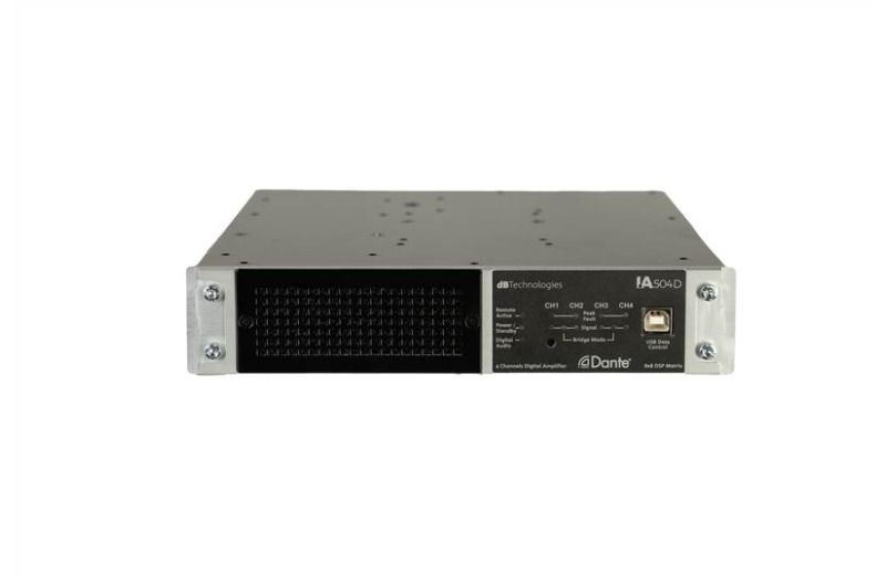 IA504, hem sabit voltajlı sistemler (70 veya 100 Volt) hem de 4 kez 125 W 4 ohm'luk profesyonel ses uygulamaları için çalışabilen, stereo veya köprü yapılandırmasına uygun, yarım raf boyutunda D sınıfı bir güç amplifikatörüdür. İki sürümü mevcuttur: her ikisi de yerleşik DSP, Güç faktörü düzeltmeli tam kapsamlı PSU ve GPIO arayüzü ile donatılmıştır, ancak ağ tarafında farklılık gösterirler.