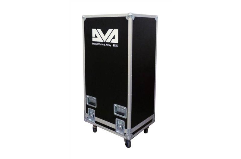 3 DVA T12 modülü için Flycase. Modüllerin montajını ve sökülmesini kolaylaştırmak için kendinden merkezlenen metal araba ile donatılmış kasa.