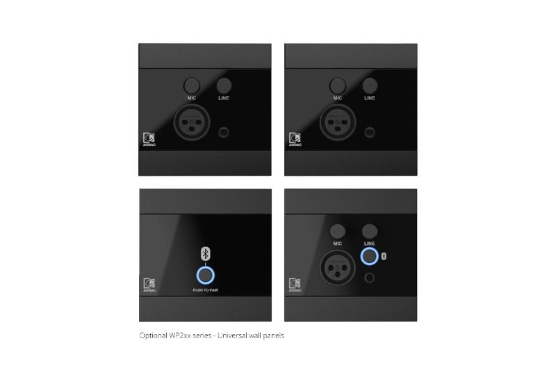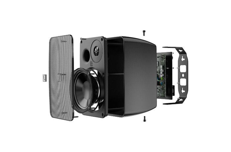 - Entegre amplifikatör 2 x 40 Watt'lık bir güç sağlayabilir ve dengeli ve dengesiz olarak uygulanan bir stereo hat girişi içerir ve her türlü ses kaynağına rahat bağlantı sağlar. Dengesiz ses kaynakları 3,5 mm jak konektörü aracılığıyla bağlanırken, dengeli kaynaklar terminal bloğu giriş bağlantısına bağlanarak uzun sinyalin parazitsiz çalışmasına olanak tanır. Bir ses potansiyometresi kullanıcının ses yüksekliği seviyesini ayarlamasına olanak tanırken, iki bantlı ton kontrolü tiz ve basların eşitlenmesine olanak tanır. Otomatik bekleme modu, giriş sinyali algılanmadığında güç tüketimini azaltır. Aktif hoparlör, giriş sinyalini pasif üniteye de ileten bir stereo amplifikatör modülü içerir.