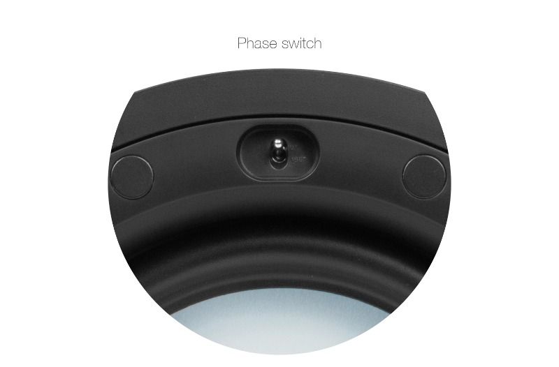 - Odanızın akustik özelliklerine ve subwoofer'ın yerleşimine bağlı olarak, faz anahtarı ayarlanarak 0° veya 180°'ye çevrildiğinde sub, odanıza daha iyi entegre edilebilir. Tüm hoparlörler düz bir duvara veya tavana monte edildiğinde 0°'yi öneririz.