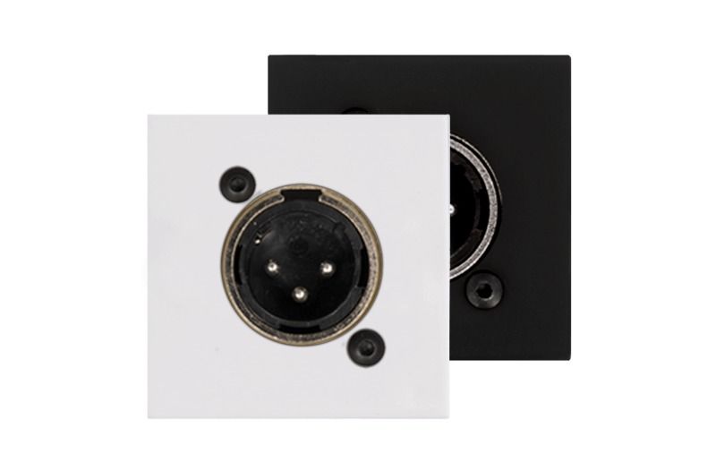 bTicino kurulum malzemeleriyle kullanılmak üzere tasarlanmış, D boyutlu 3 kutuplu Erkek XLR konnektörlü bağlantı plakası. Siyah (/B) ve Beyaz (/W) renkleri mevcuttur. (Montaj çerçevesi ve kapak plakası dahil değildir)
