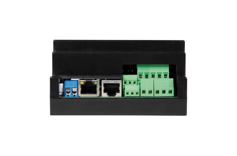 - Siyah ABS mahfazanın ön tarafı, bağlantı olanaklarına kısa bir genel bakış sunarken, arka tarafı, yaygın olarak bulunan standart DIN raylarına kolay montaj sağlayan bir yaylı montaj mekanizması ile donatılmıştır. Bu şekilde, isteğe bağlı PSD24x güç kaynağı kullanılarak çalıştırılabileceği herhangi bir elektrik kabinine kolayca entegre edilmesi mümkündür.