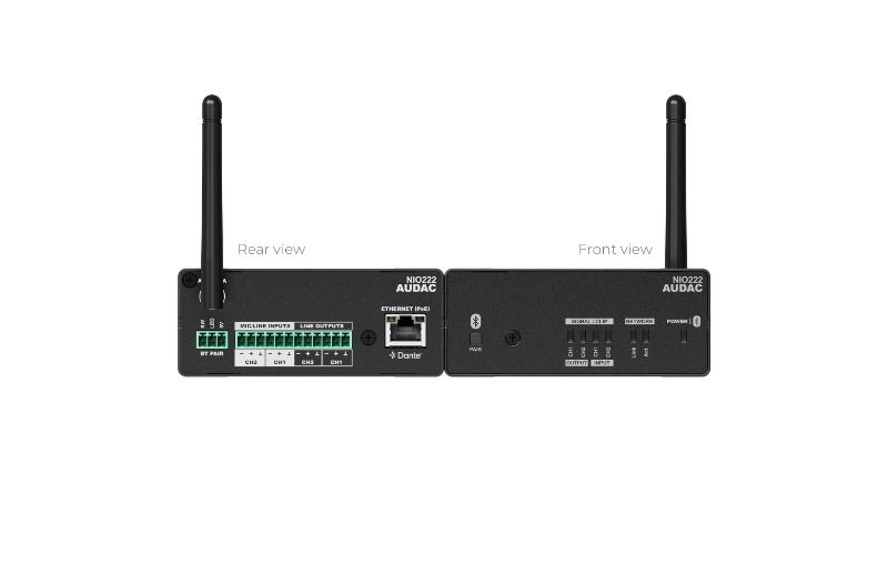 - NIO serisi, terminal bloğu giriş ve çıkış ses ve Bluetooth bağlantılarına sahip Dante/AES67 ağ I/O karıştırma ara kutularıdır. Ses girişleri, hat seviyesi ve mikrofon seviyesi ses sinyalleri arasında değiştirilebilir ve yoğunlaştırıcı mikrofonlara güç sağlamak için giriş konektörlerine fantom gücü (+48 V DC) uygulanabilir.