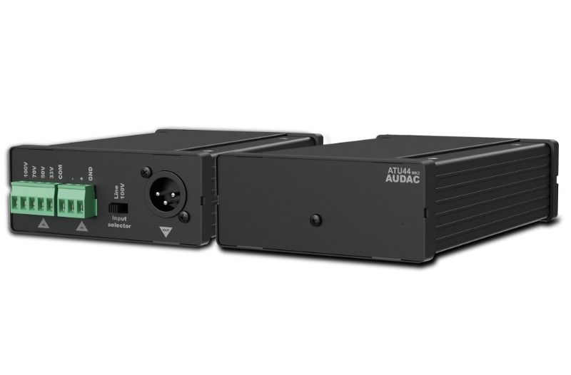 ATU44, çeşitli ses seviyesi sinyalleri arasında dönüşüm sağlayan, ses sistemlerine çok çeşitli bağlantı ve genişletme olanakları sunan evrensel bir giriş adaptör ünitesidir. Hoparlör seviyesi girişi, 100V, 70V, 50V ve 33V ses seviyeleri için çeşitli kademelere sahiptir; dengeli hat girişi ise dengeli ve/veya dengesiz hat seviyesi ses sinyalleri arasında dönüşüme olanak tanır. Tipik bir uygulama örneği, hoparlör seviyesindeki herhangi bir ses sinyalinin dengeli veya dengesiz hat seviyesi sinyallerine dönüştürülmesidir. Girişine her türlü hoparlör seviyesi sinyali uygulanabilir. Bu, herhangi bir sabit voltaj dağıtımlı ses sisteminin genişletilmesi ve dönüştürülmüş çıkışın ek bir amplifikatöre beslenmesi için yararlı olabilir. Diğer bir tipik uygulama ise kayıt ekipmanlarının hoparlör hatlarına bağlanmasıdır. Tüm giriş ve çıkışlar arasındaki galvanik izolasyonu kullanarak, toprak döngülerinin neden olduğu uğultu ve vızıltı sorunlarını çözen bir ses izolasyon çözümü olarak kullanılabilir. Ön panel anahtarı, hat veya hoparlör seviyesi girişi arasında giriş sinyali seçimine izin verirken, tüm girişler terminal bloğu konnektörleri kullanılarak bağlanır. Hat çıkışı, erkek XLR konektörü kullanılarak bağlanır. AUDAC S-Box ürün yelpazesi için isteğe bağlı olarak temin edilebilen çeşitli montaj braketleri, masa, dolap veya 19" ekipman rafı kurulumuna olanak sağlar.
