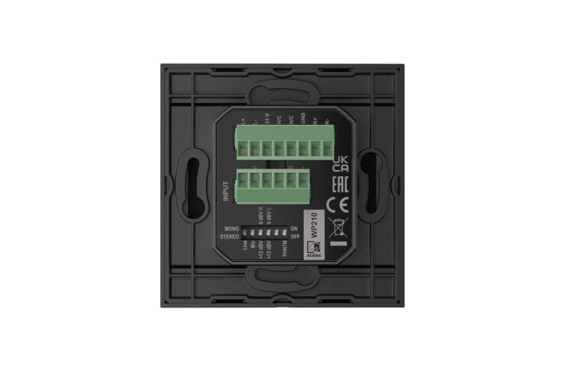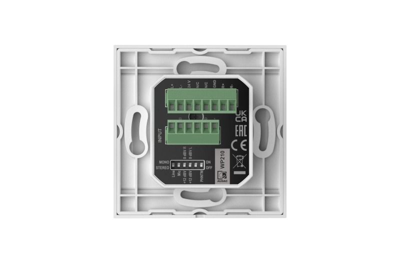 - WP210, çeşitli AUDAC donanımıyla (ARES5A, MTX serisi, AMP523 ve daha fazlası) birlikte kullanılabilen bir uzaktan duvar mikseridir. Stereo hat düzeyindeki bir ses kaynağından (örneğin tuner, mobil cihazlar,...) veya dengeli mikrofondan gelen sinyali diferansiyel sinyal girişine karşılık gelen seviyeye dönüştürür ve yalnızca ucuz çift bükümlü CAT5e veya daha iyi kablo kullanarak duvar paneli ile hoparlör arasındaki uzun mesafeler üzerinden yüksek kaliteli ses aktarımını mümkün kılar. Duvar panelinin ön tarafında, dengeli bir XLR mikrofon girişi ile birlikte 3,5 mm jak stereo hat giriş bağlantısı bulunmaktadır; her ikisinde de sinyallerin birbirine karıştırılmasına olanak tanıyan kendi düğmeleri bulunur.