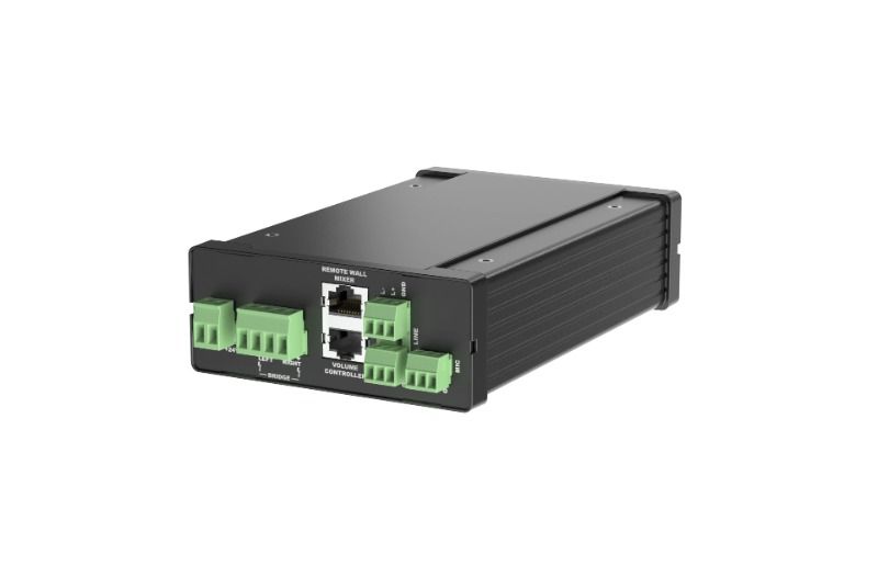 - Girişler için yerel karıştırmanın istendiği uygulamalar için bir uzak duvar mikseri bağlanabilirken, basit CAT5E veya daha yüksek bükümlü çift kablo kullanılarak kaynak ile amplifikatör arasında büyük mesafeler kapatılabilir. Ses seviyesi kontrol cihazı girişi, genel ses seviyesi kontrolü için ek bir duvar kontrol cihazının bağlanmasına olanak tanır.