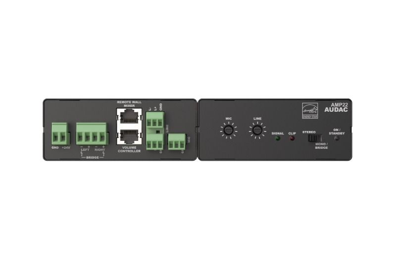 - AMP22, kompakt ve ekonomik ses çözümleri gerektiren küçük hoparlör sistemlerine mükemmel şekilde uyum sağlayan, 2 x 15 Watt güç derecesine sahip bir mini stereo güç amplifikatörüdür. Sadece az miktarda hoparlöre ihtiyaç duyulan derslik, ofis ve toplantı odası gibi uygulamalar için ideal çözüm sunar.