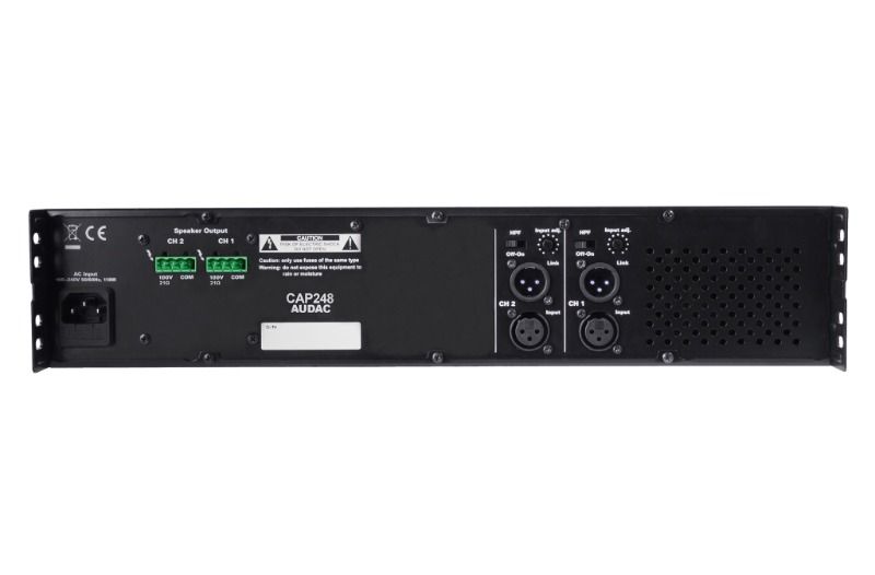 - CAP serisi profesyonel 100V çok kanallı güç amplifikatörleridir. CAP248 iki kanal sunar ve 480 Watt çıkış gücüne sahiptir. Bu sayede iki bağımsız bölgeye sahip çok bölgeli ses dağıtım sistemleri için esnek bir çözüm yaratılmış olur. Yalnızca gerekli kontrol ve bağlantılara sahip, basit amplifikatörler olarak tasarlanmışlardır, bu da kullanım ve kurulumda büyük kolaylık sağlar. Cihazların yüksek verimliliği ve güvenilirliği, D Sınıfı amplifikatör teknolojisiyle birlikte anahtarlamalı güç kaynaklarının kullanılmasıyla elde edilir. Sıcaklık kontrollü bir fan, aşırı vızıltıyı önlerken tüm parçaları sürekli olarak doğru çalışma aralığında tutar. Yerleşik çok amaçlı koruma devresi DC arızasına, Kısa devreye, aşırı ısınmaya, aşırı yüke karşı koruma sağlar ve gerektiğinde sinyali sınırlar. Giriş bağlantıları dengeli XLR konnektörleri kullanılarak gerçekleştirilir ve diğer amplifikatörlere bağlantı için Bağlantı çıkış konnektörleri sağlanır. Ayrıca her kanal için yüksek geçişli filtre anahtarı (400 Hz) ve Kazanç ayar potansiyometresi bulunmaktadır. Çıkış bağlantıları güvenilir terminal bloğu konnektörleri kullanılarak gerçekleştirilir ve bunların tümü sağlam yapılı, çift raf alanı (2 HE) 19" raf montaj muhafazasına yerleştirilmiştir.